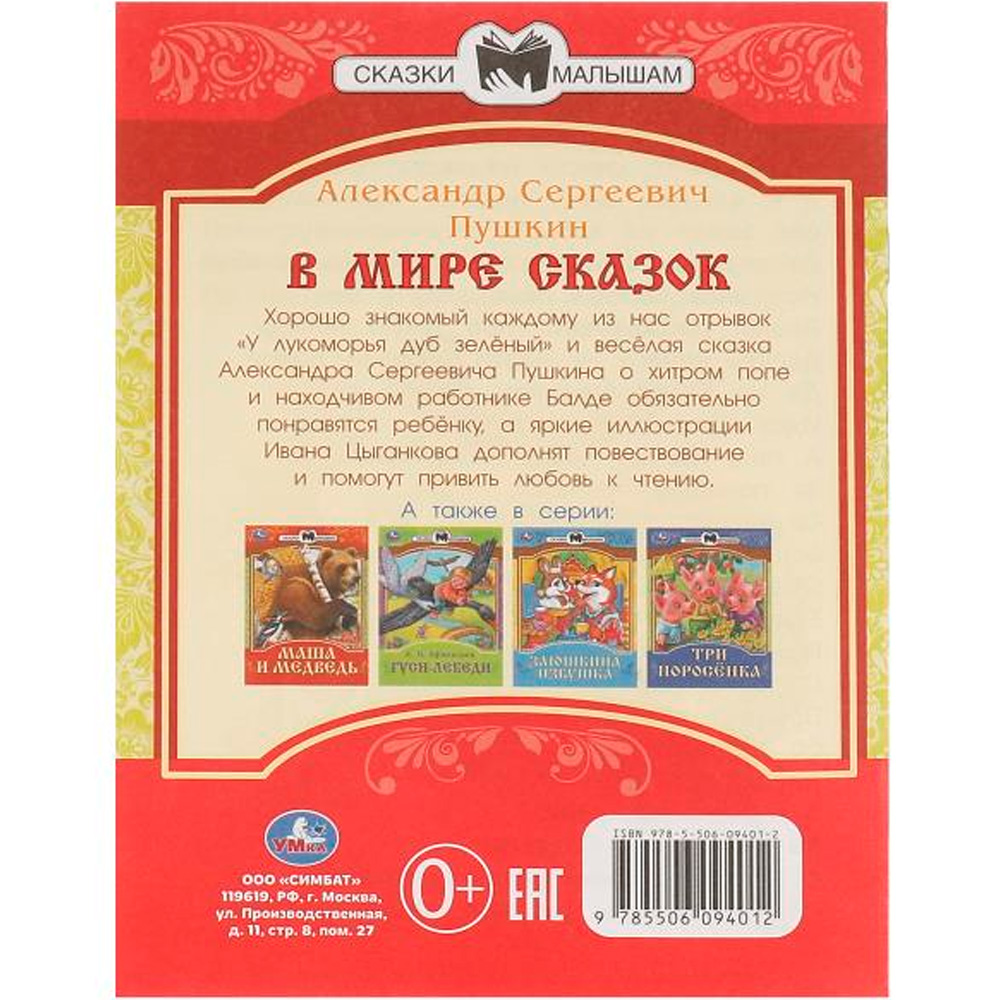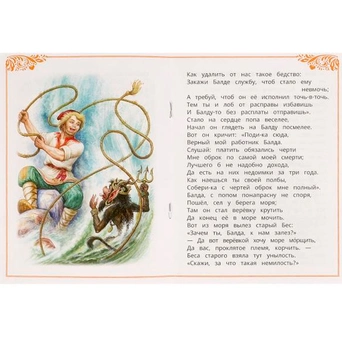 В издании представлены отрывок «У Лукоморья дуб зелёный» и «Сказка о попе и о работнике его Балде» классика русской литературы Александра Пушкина.