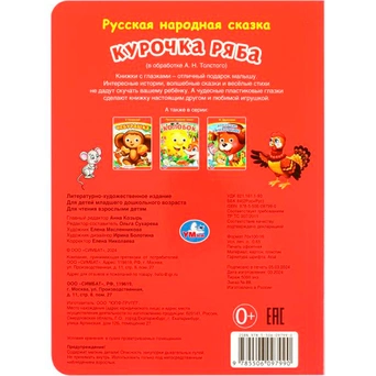 Ярко проиллюстрированная книжка-картонка содержит русскую народную сказку для малышей.