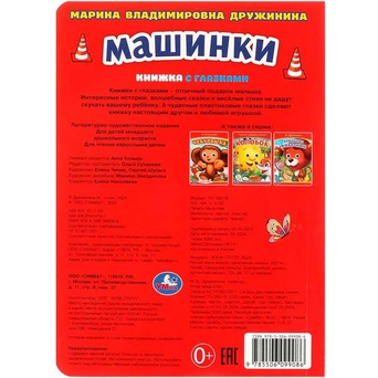 На каждой странице у героев на месте глаз — прорези, на последней странице — пластиковые глазки с подвижными зрачками.
