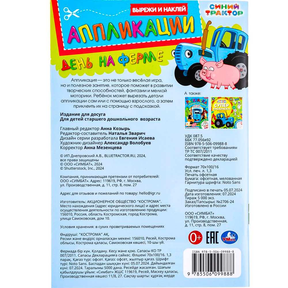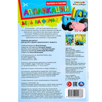 Книга Умка 9785506099888 День на ферме. Синий Трактор. Вырежи и наклей аппликации