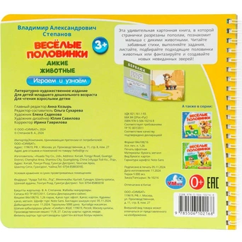 Книга «В. А. Степанов. Дикие животные» из серии «Весёлые половинки» ТМ «УМка» поможет в игровой форме познакомить малыша с окружающим миром.
