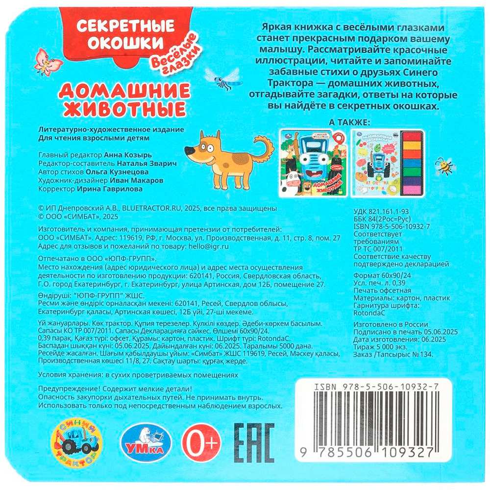 На каждой странице у героев на месте глаз — прорези, на последней странице — пластиковые глазки с подвижными зрачками.