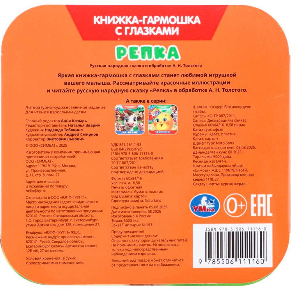 Книга Умка 9785506111160 Репка. Книжка-гармошка с глазками