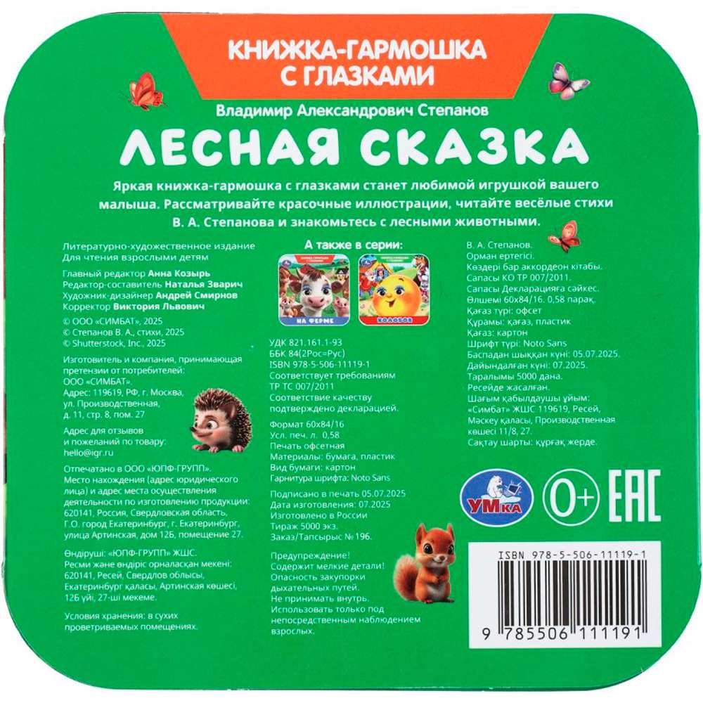 Книга Умка 9785506111191 Лесная сказка. Степанов В. А. Книжка-гармошка с глазками