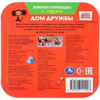 Книга Умка 9785506111207 Дом дружбы.Чебурашка.Золотая коллекция. Книжка-гармошка с глазками
