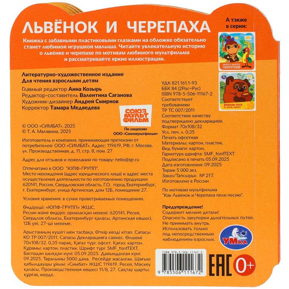 Книжка с глазками «Союзмультфильм. Львёнок и Черепаха» ТМ «УМка» — отличный подарок для любознательного малыша.