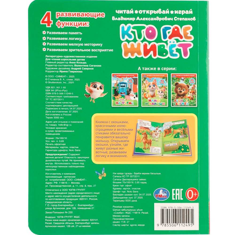 Книга Умка 9785506112495 Кто где живёт. Степанов В. А. Книжка с глазками и окошками