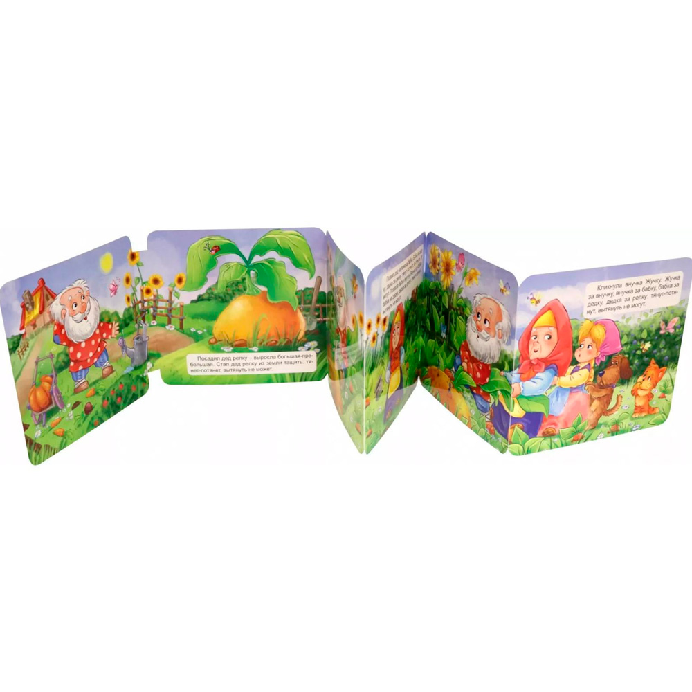 Книжка-игрушка в виде гармошки - отличная игрушка для веселых игр и чтения, которая поможет разнообразить досуг малыша. Книжка содержит сказку о семье, которая вырастила большую репку. Книжка поможет развлечь малыша во время поездки или ожидания в очереди. Она содержит яркие красочные иллюстрации, которые привлекут внимание ребенка. Плотные картонные страницы выполнены из безопасных экологически чистых материалов. Книга имеет небольшой удобный формат. Такая книжка-игрушка порадует ребенка и поможет разнообразить его игры.