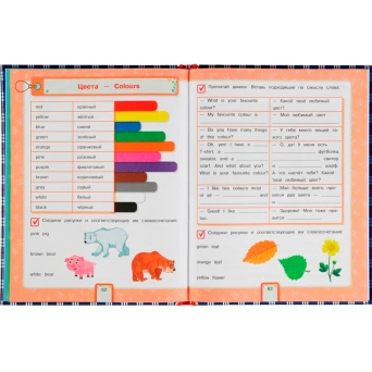 Обучающая книжка с яркими цветными иллюстрациями - это занимательная развивающая игра, которая познакомит малышей с английским языком.
