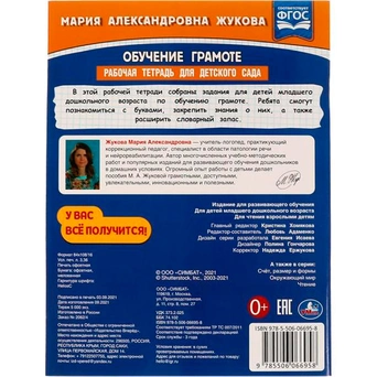 В этой тетради собраные интересные и полезные задания по авторской методике М. А. Жуковой. Упражнения дадут возможность малышу лучше усвоить знания о многообразии звуков и букв, станут хоршими помощниками в формировании фонетического слуха.