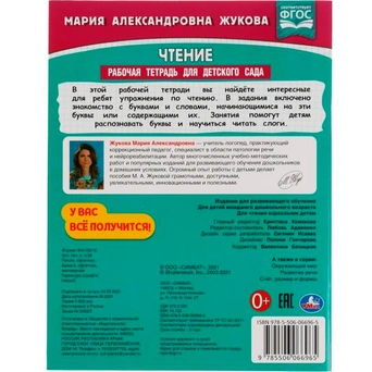Рабочая тетрадь для детского сада «Чтение» от ТМ «УМка» - отличный тренажёр, предназначенный для детей старшего дошкольного возраста.