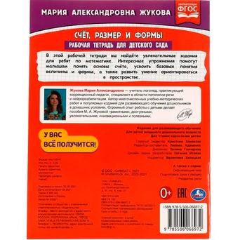 В этой тетради собраные интересные и полезные задания по авторской методике М. А. Жуковой. Интересные упражнения научат детей математическому счёту, определять размер и формы. В процессе занятий ребенок развивает мышление, логику, внимание и усидчивость.