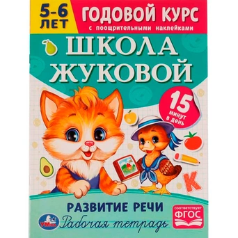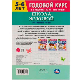 Рабочая тетрадь с поощрительными наклейками «Школа Жуковой. Развитие речи. Годовой курс» от ТМ «УМка» поможет ребенку 5-6 лет развить правильную артикуляцию и расширить словарный запас. Выполняя задания, он научится делить слова на слоги, образовывать новые словоформы, ставить ударения и пересказывать текст.