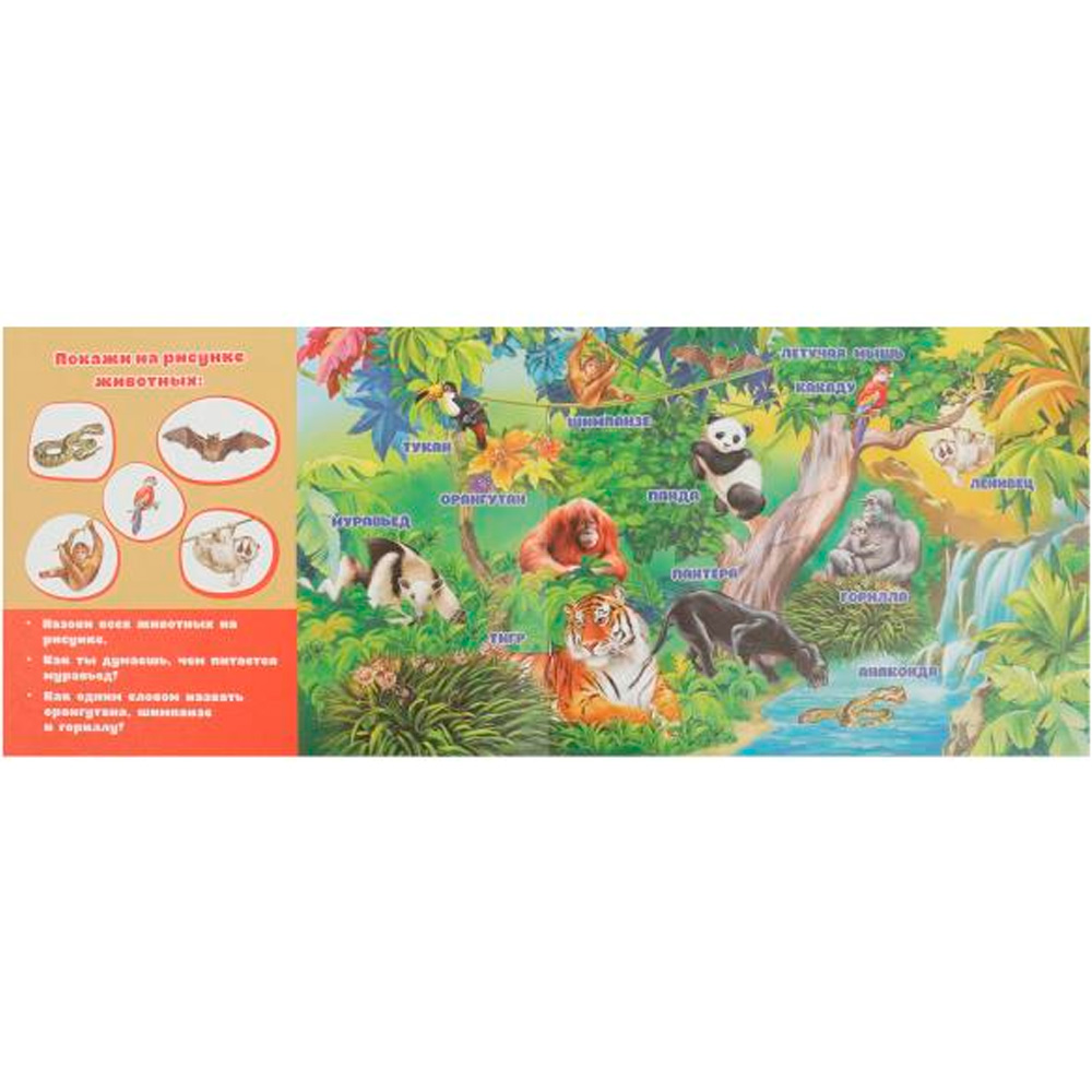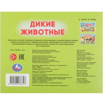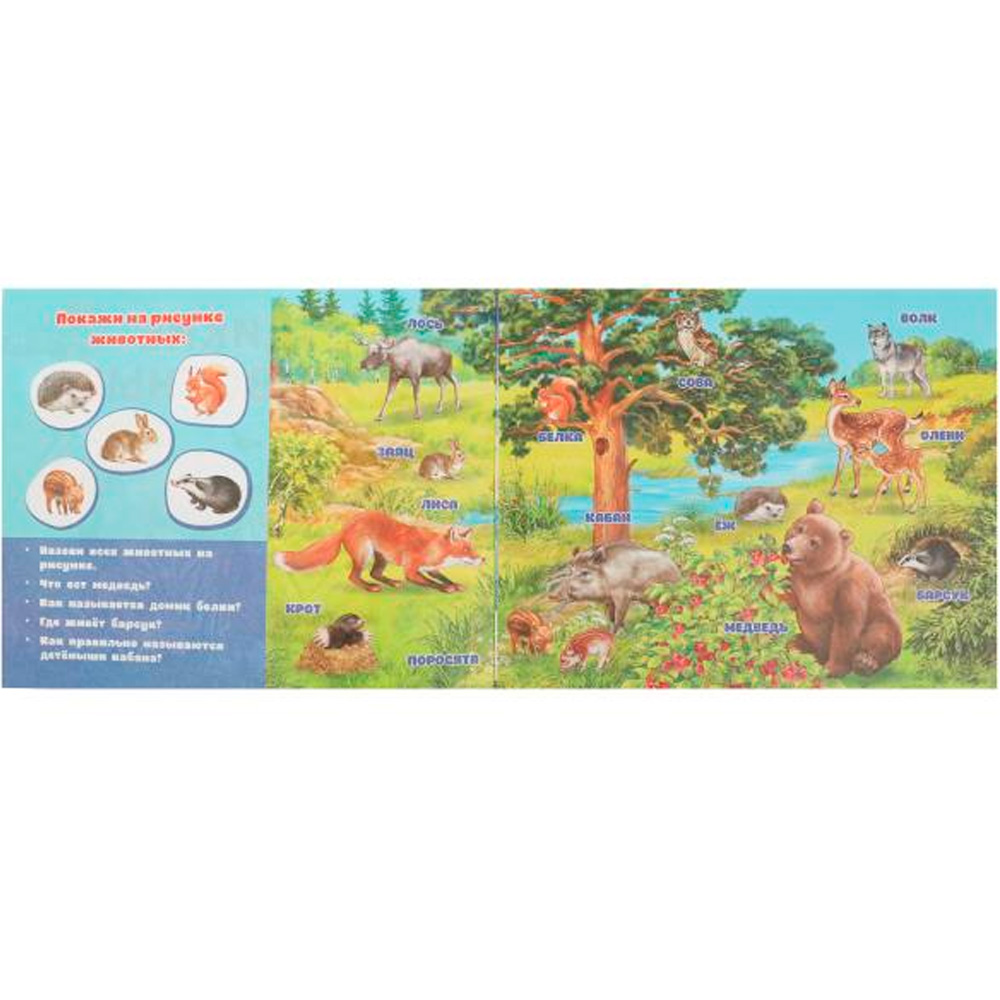 В альбоме представлены дикие животные и основные сведения о них: что они едят, где живут, как называются их домики и детеныши.