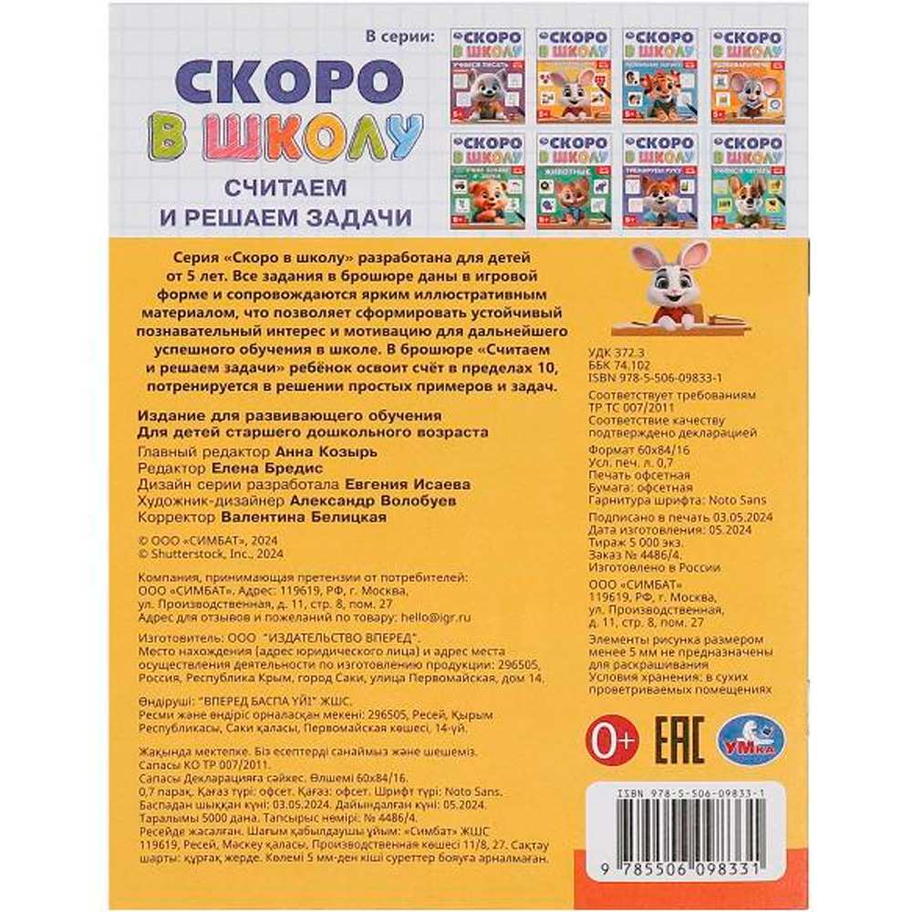 Книга Умка 9785506098331 Считаем и решаем задачи. Скоро в школу