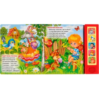 Книжка с музыкальным модулем содержит народные песенки и потешки для малышей. Звуковой модуль активируется при нажатии на кнопку. Текст сделан крупным, чтобы дети постарше могли научиться читать его. Книга сделана из плотного картона и качественно иллюстрирована. Такую книгу будет очень интересно читать и разглядывать, а также развивать мелкую моторику и цветовое восприятие. Книжка небольшого размера, ее очень удобно держать в руках. Издание имеет безопасный и удобный формат. Чтение способствует тренировке памяти, усидчивости, слухового и зрительного восприятия, мелкой моторики рук.