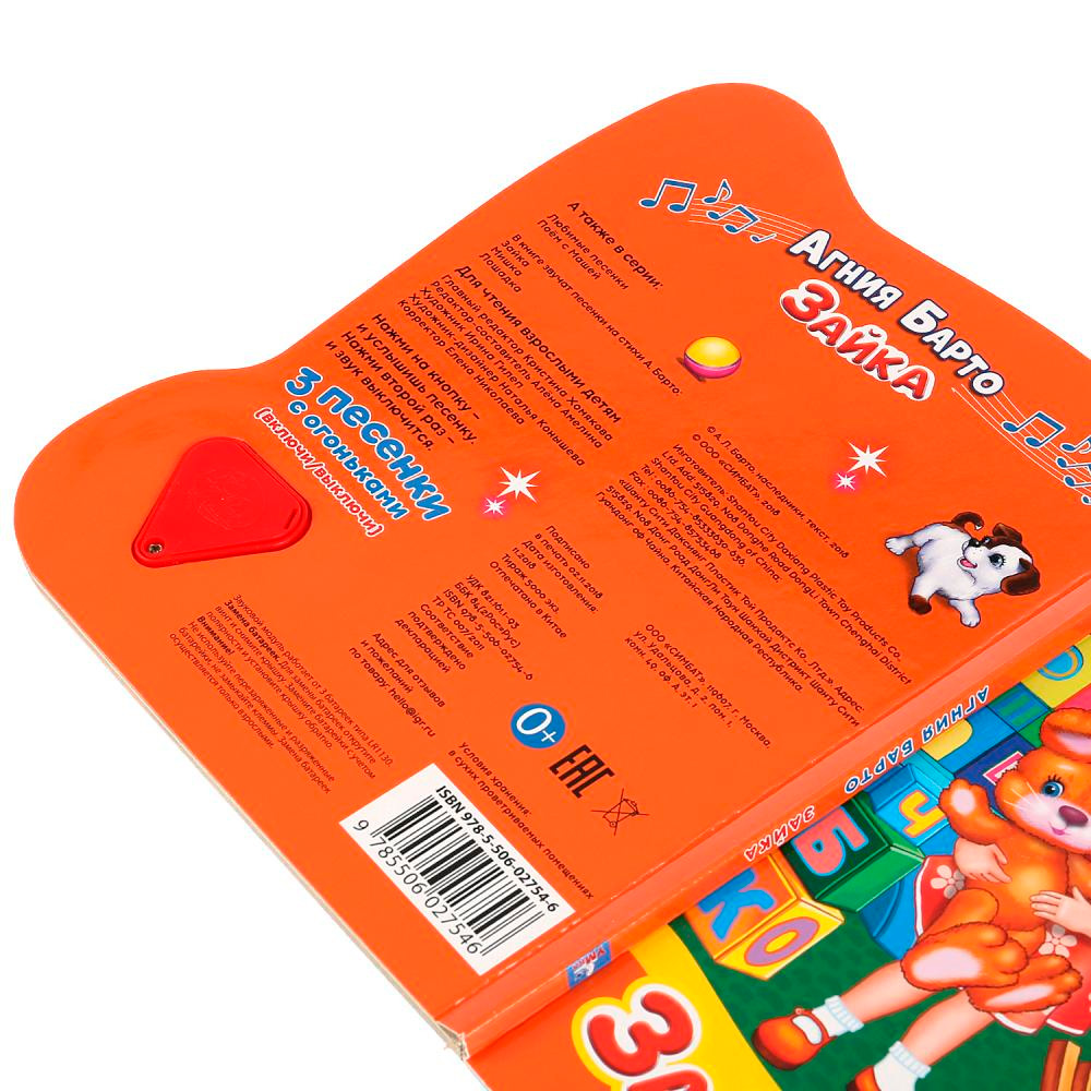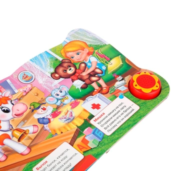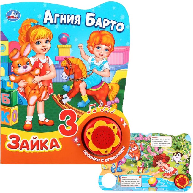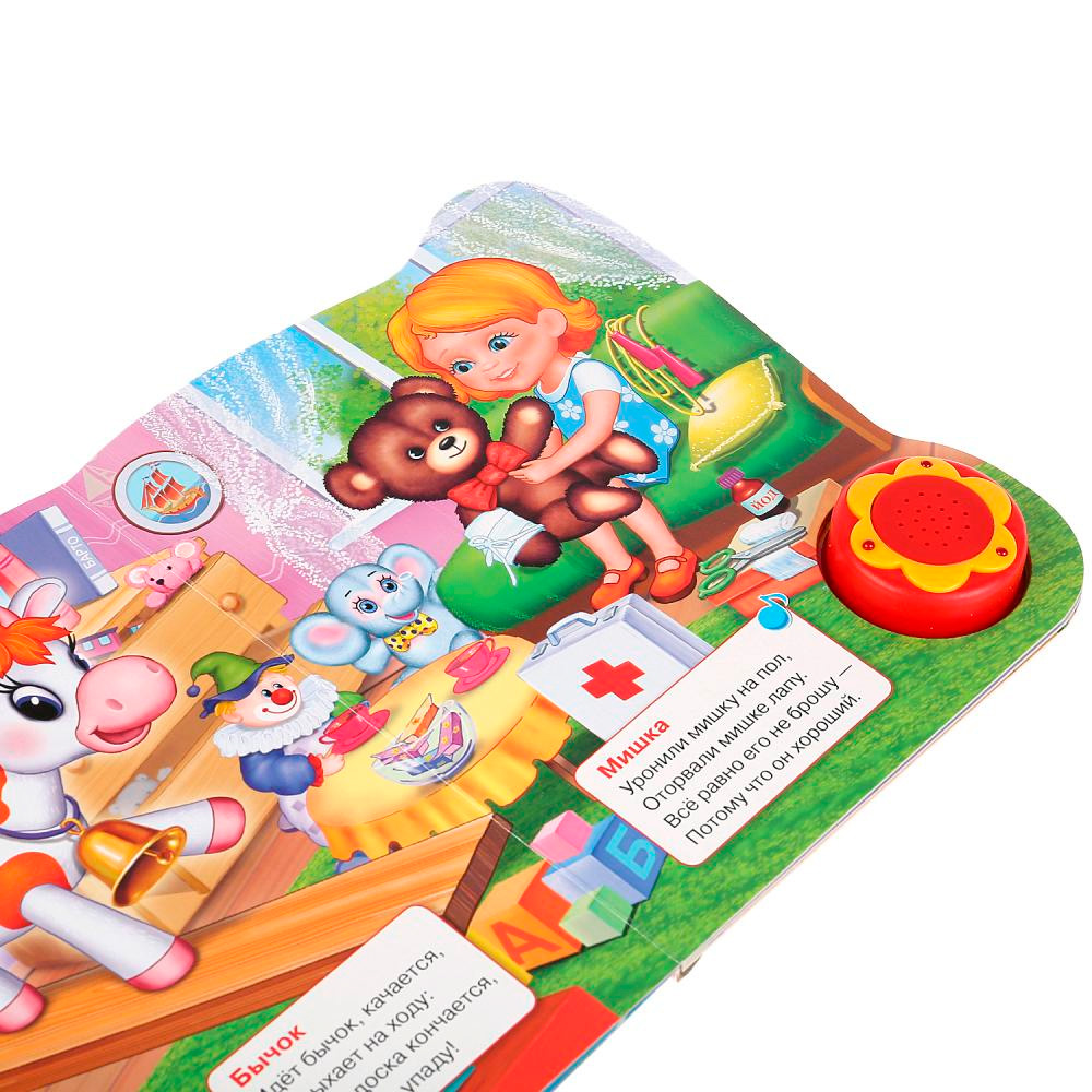 Яркая картонная книжка содержит веселые стихи. Кроме того, книжка оснащена световым модулем - яркими огоньками. Книжка с музыкальным модулем и кнопкой позволит малышу занимательно провести время. Звуковой модуль активируется при нажатии на кнопку и позволяет прослушать веселую песенку. Текст сделан крупным, чтобы дети постарше могли научиться читать его. Книга изготовлена из плотного картона и качественно иллюстрирована. Такую книгу будет очень интересно читать и разглядывать, а также развивать мелкую моторику и цветовое восприятие. Книжка небольшого размера, ее очень удобно держать в руках. Издание имеет безопасный и удобный формат. Чтение способствует тренировке памяти, усидчивости, слухового и зрительного восприятия, мелкой моторик