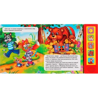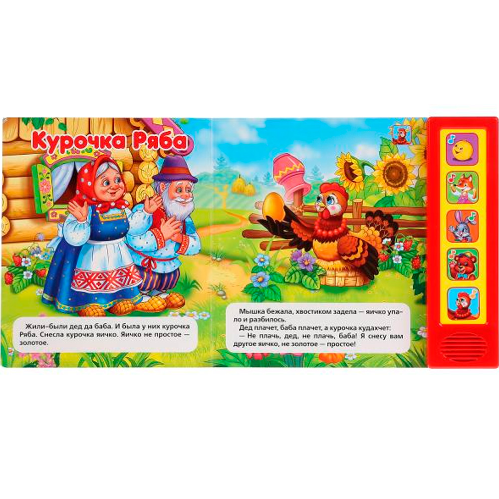 Красочная книжка с музыкальным модулем содержит обучающий материал. Звуковой модуль активируется при нажатии на кнопку. Изделие имеет 5 кнопок. Текст сделан крупным, чтобы дети постарше могли научиться читать его. Книга сделана из плотного картона и качественно иллюстрирована. Такую книгу будет очень интересно читать и разглядывать, а также развивать мелкую моторику и цветовое восприятие. Книжка небольшого размера, ее очень удобно держать в руках. Издание имеет безопасный и удобный формат. Чтение способствует тренировке памяти, усидчивости, слухового и зрительного восприятия, мелкой моторики рук.