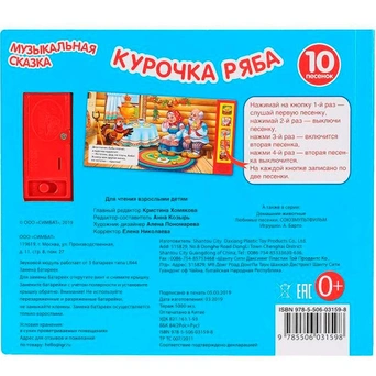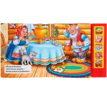 Книжка с музыкальным модулем расскажет интерсную сказку. Звуковой модуль активируется при нажатии на кнопку. Изделие имеет 5 кнопок - дети могут прослушать 5 забавных песенок. Текст сделан крупным, чтобы дети постарше могли научиться читать его. Книга сделана из плотного картона и качественно иллюстрирована. Такую книгу будет очень интересно читать и разглядывать, а также развивать мелкую моторику и цветовое восприятие. Книжка небольшого размера, ее очень удобно держать в руках. Издание имеет безопасный и удобный формат. Чтение способствует тренировке памяти, усидчивости, слухового и зрительного восприятия, мелкой моторики рук.