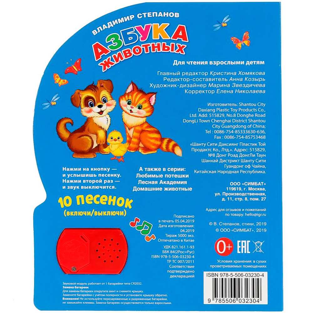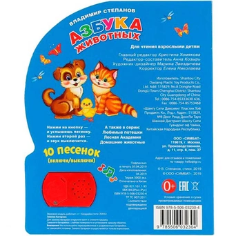 Книжка с музыкальным модулем содержит зстихи о животных и песенки. Звуковой модуль активируется при нажатии на кнопку. Текст сделан крупным, чтобы дети постарше могли научиться читать его. Книга сделана из плотного картона и качественно иллюстрирована. Такую книгу будет очень интересно читать и разглядывать, а также развивать мелкую моторику и цветовое восприятие. Книжка небольшого размера, ее очень удобно держать в руках. Издание имеет безопасный и удобный формат. Чтение способствует тренировке памяти, усидчивости, слухового и зрительного восприятия, мелкой моторики рук.