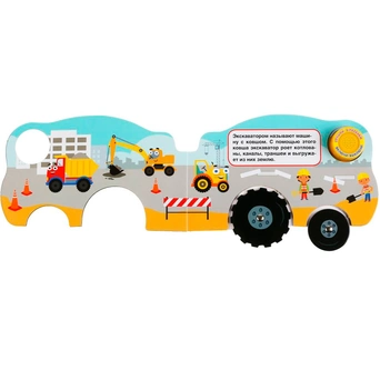 Красочная книжка содержит веселые песенки, яркие картинки, стихи и познакомит малышей с разныи видами транспорта. У книжки есть колесики, так что с ней еще можно и поиграть. Звуковой модуль активируется при нажатии на кнопку. Книга выполнена из плотного картона и ярко иллюстрирована. Такую книгу будет очень интересно читать и разглядывать картинки, а также тренировать мелкую моторику и цветовое восприятие. Книжкаобладает удобным форматом. Издание имеет безопасный и удобный формат. Чтение способствует тренировке памяти, усидчивости, слухового и зрительного восприятия, мелкой моторики рук.