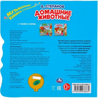 Книжка с музыкальным модулем содержит занимательные стихи и песенки.