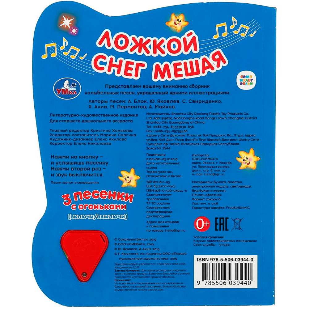 Книжка с музыкальным модулем содержит сказку и песенки. Звуковой модуль активируется при нажатии на кнопку. Текст сделан крупным, чтобы дети постарше могли научиться читать его. Книга сделана из плотного картона и качественно иллюстрирована. Такую книгу будет очень интересно читать и разглядывать, а также развивать мелкую моторику и цветовое восприятие. Книжка небольшого размера, ее очень удобно держать в руках. Издание имеет безопасный и удобный формат. Чтение способствует тренировке памяти, усидчивости, слухового и зрительного восприятия, мелкой моторики рук.