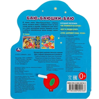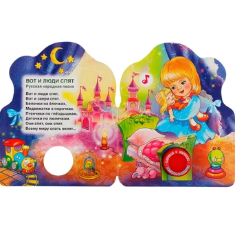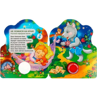 Замечательная музыкальная книга «Баю-баюшки-баю» станет прекрасным подарком для малыша. С помощью такой книжки ребёнка можно укладывать спать под добрые колыбельные песенки.