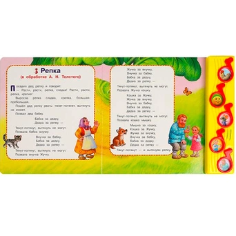 Книжка с музыкальным модулем содержит занимательную историю и 5 песенок.