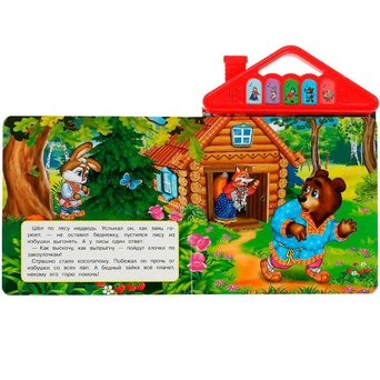Книжка с музыкальным модулем содержит текст с картинками и веселые песенки.