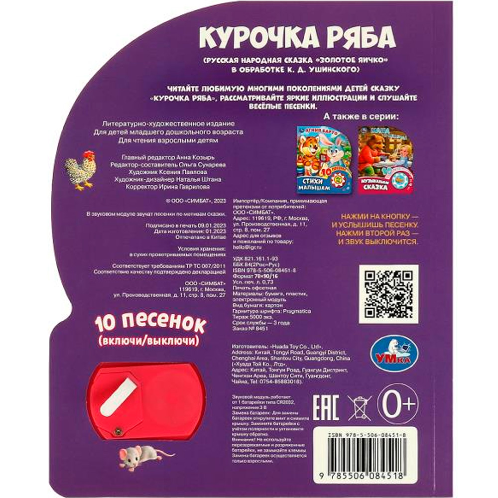 Книжка с музыкальным модулем содержит занимательную историю и песенки.