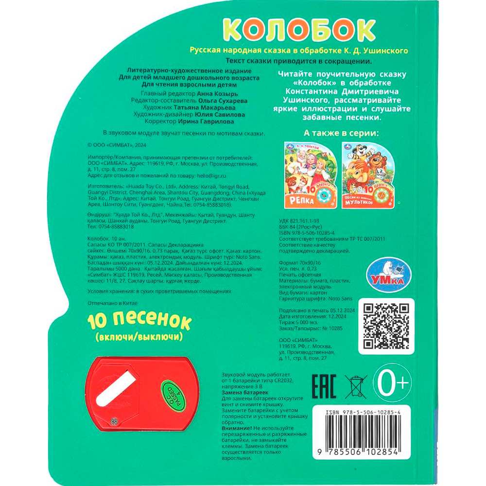 Книжка с музыкальным модулем содержит занимательную историю и песенки.
