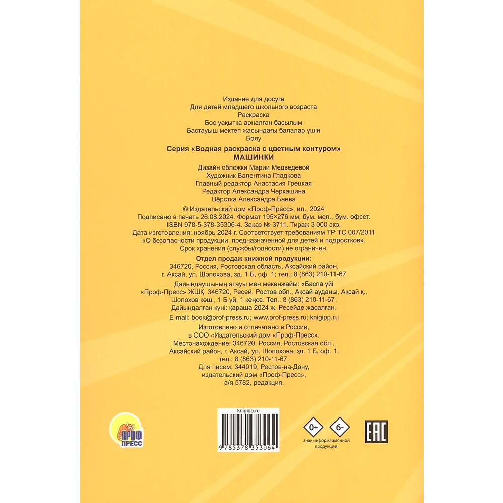 Раскраска 978-5-378-35306-4 Водная раскраска с цветным контуром. Машинки