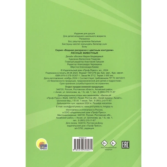 Раскраска 978-5-378-35307-1 Водная раскраска с цветным контуром. Лесные животные