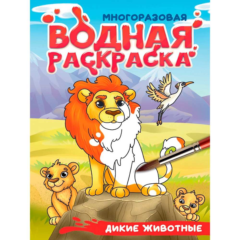Раскраска 978-5-378-35667-6 Многоразовая водная раскраска. С черным контуром. Дикие животные