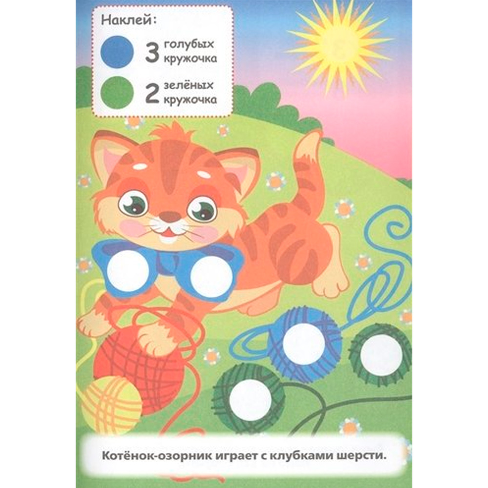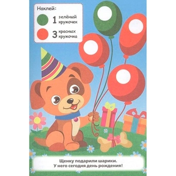 Серия развивающих книг с наклейками предназначена для развития у детей усидчивости, аккруратности, внимания, моторики рук и координации движений. Увлекательная и познавательная книжка обязательно понравится малышу. Ребенку необходимо аккуратно наклеивать кружочки в зависимости от цвета. Затем их можно посчитать. Простые и понятные игровые сюжеты и яркие картинки способны надолго увлечь ребенка.