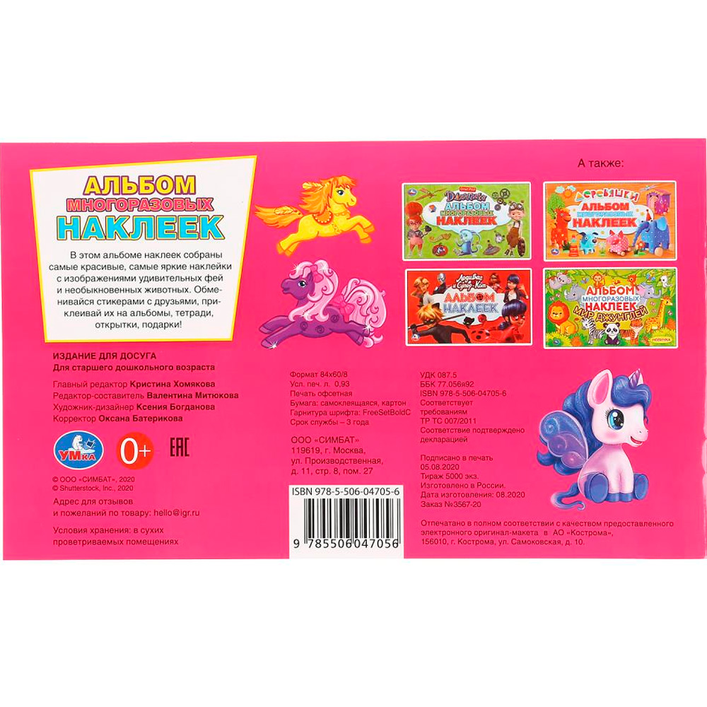 Альбом наклеек «Феи и единороги» ТМ «УМка» станет прекрасным подарком для ребёнка.