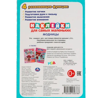 Забавная детская книжка с наклейками «L.O.L. Surprise! Модницы» от ТМ «УМка» станет прекрасным подарком для маленьких поклонниц стильных миниатюрных куколок.