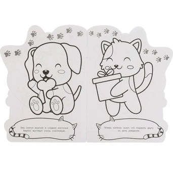 • Книжка содержит картинки для раскрашивания карандашами, фломастерами или красками.