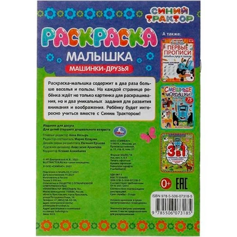 Раскраска 9785506073185 Раскраска-малышка.Машинки-друзья.Синий Трактор.16 заданий