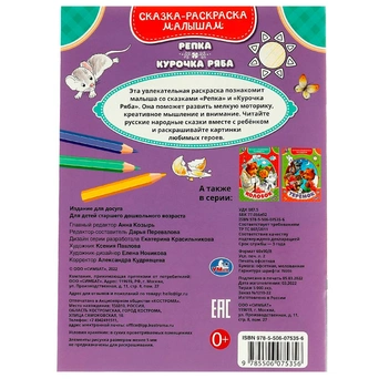 Раскраска 9785506075356 Репка.Курочка Ряба. Сказка-раскраска малышам