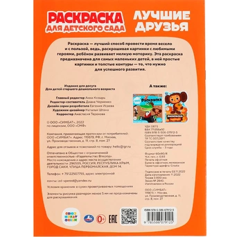 Книжка содержит картинки для раскрашивания карандашами, фломастерами или красками.