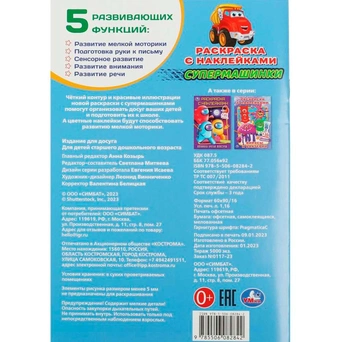 Книжка содержит картинки для раскрашивания карандашами, фломастерами или красками.