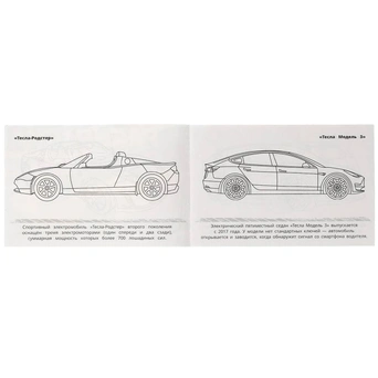 Книжка содержит картинки машинок для раскрашивания карандашами, фломастерами или красками.