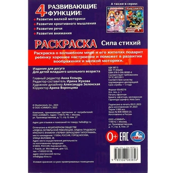 Книжка содержит картинки для раскрашивания карандашами, фломастерами или красками.