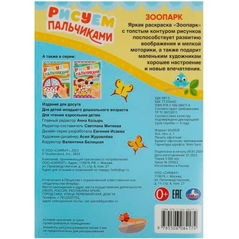 Раскраска для самых маленьких содержит картинки для раскрашивания пальчиковыми красками.
