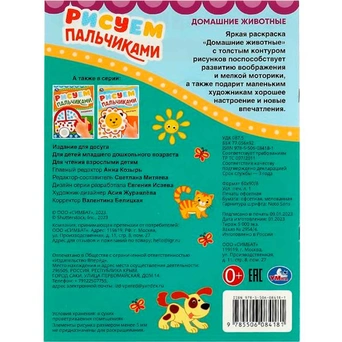 Раскраска для самых маленьких содержит картинки для раскрашивания пальчиковыми красками.