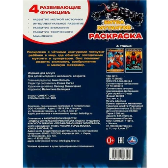 Книжка содержит картинки для раскрашивания карандашами, фломастерами или красками.