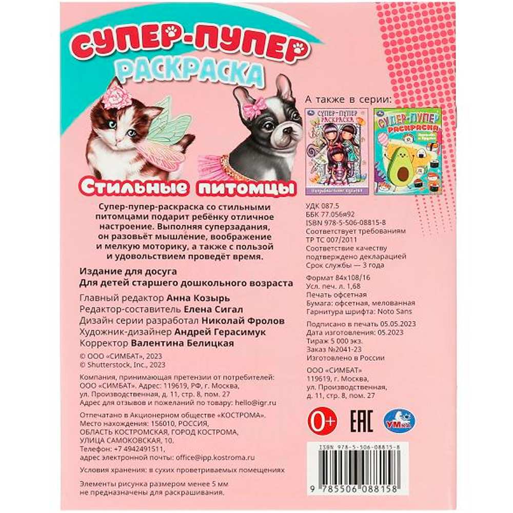 Книжка содержит картинки для раскрашивания карандашами, фломастерами или красками, увлекательные суперзадания и короткие сюжетные тексты.