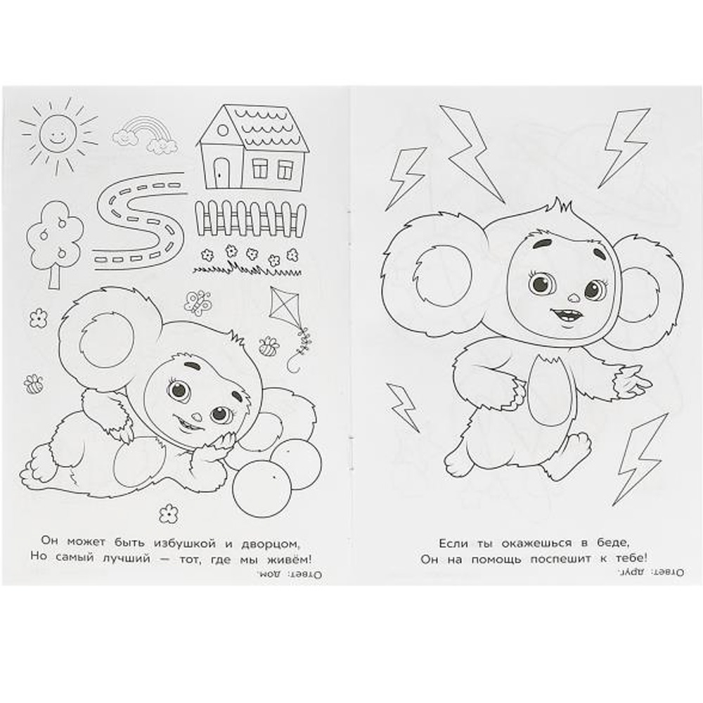 Книжка содержит картинки для раскрашивания.